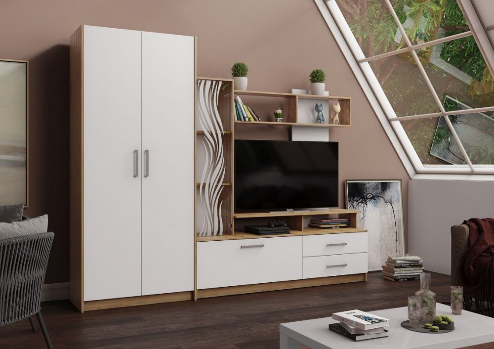 ДАРЬЯ Гостиная (Дуб Вотан/Белый глянец)