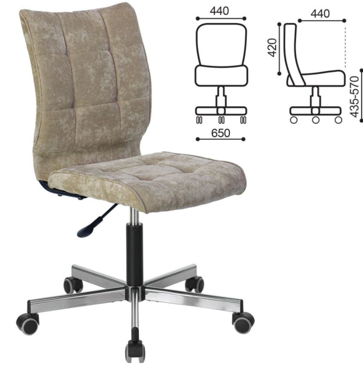 Кресло BRABIX "Stream MG-314", без подлокотников, пятилучие серебристое, ткань, песочное, 532396, MG-314_532396