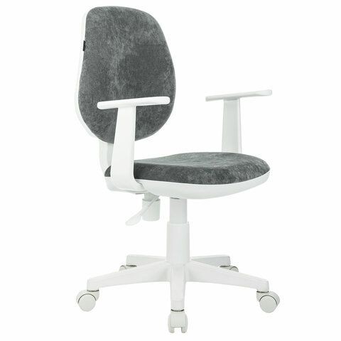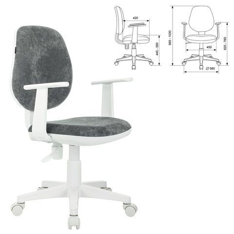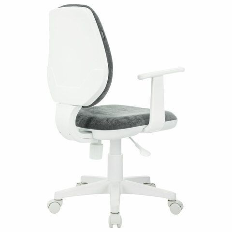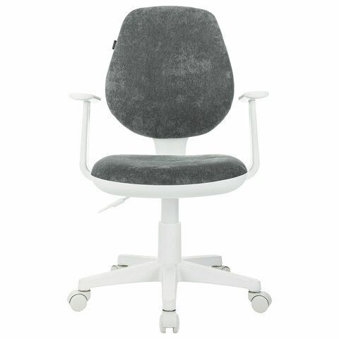 Кресло детское BRABIX "Fancy MG-201W", с подлокотниками, пластик белый, велюр, серое, 533010