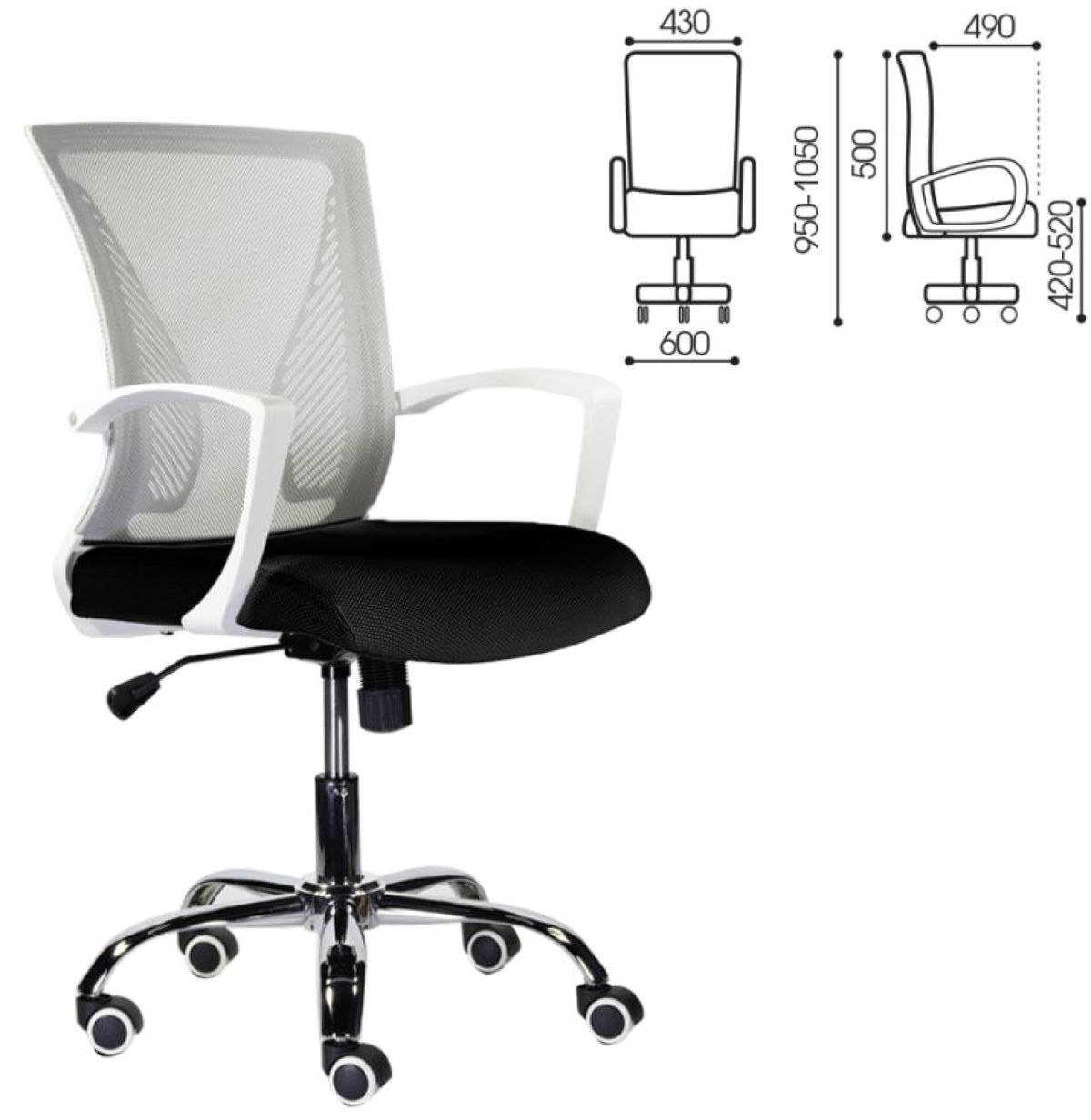 Кресло BRABIX "Wings MG-306", пластик белый, хром, сетка, серое/черное, 532010