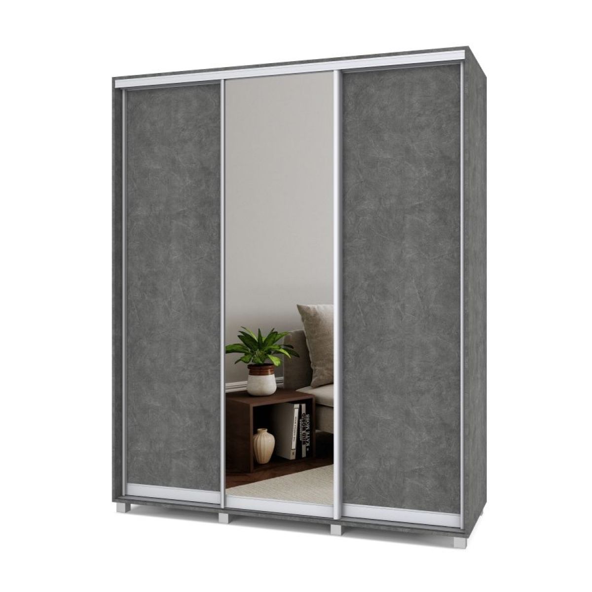 РОЛАНД Шкаф-купе с зеркалом Камень темный (450*1800) Р482