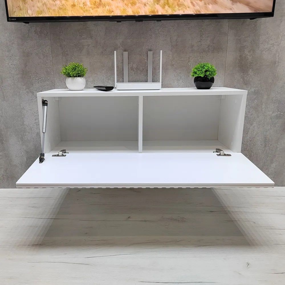 Данные подвесные тумбы под телевизор можно навешивать на стену комплектом (по 2 шт.).