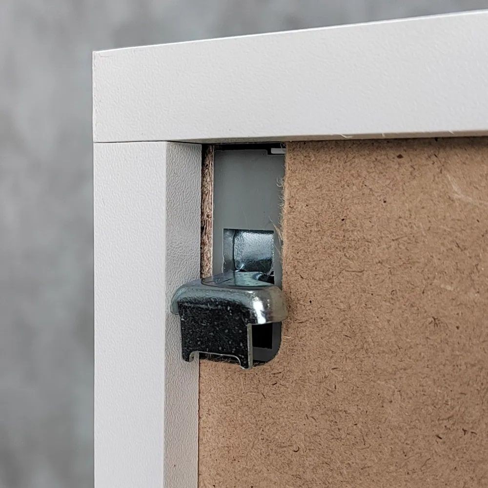 Задняя стенка из ХДФ (древесноволокнистой плиты повышенной плотности), устанавливается в паз и дополнительно фиксируется уголками.
