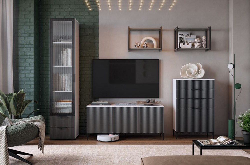 ЗЕФИР Гостиная К2 (белое дерево/черный муар)